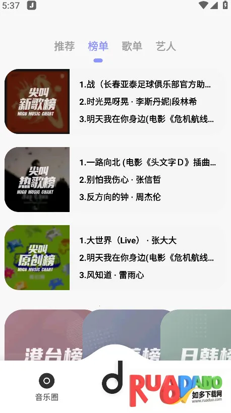 2、它拥有丰富的音乐曲库,涵盖国内外热门、经典、小众等各类音乐作品,全网流行音乐全部收录,还提供抖音榜、新歌榜等众多榜单及上万个歌单,帮助用户发现热门歌曲。