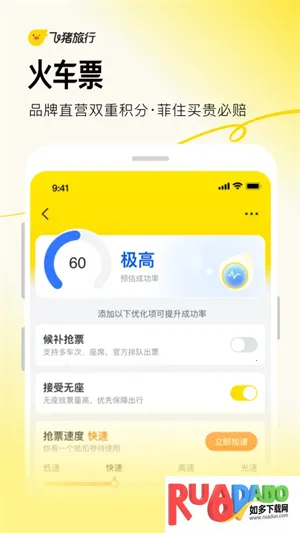4. 抢票功能强大,支持预约抢票、实时捡漏、极速云抢票,还支持多种票种,抢票成功率有保障。