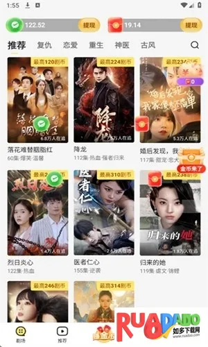 4、有收益激励:观看短剧可获金币奖励,完成任务也能积累金币,金币可兑换现金,娱乐与收益兼得。