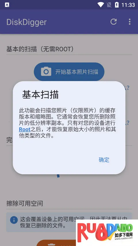 1. DiskDigger汉化版操作简单,无需专业知识,用户轻松上手,扫描和恢复一键完成,30秒即可完成手机数据扫描。