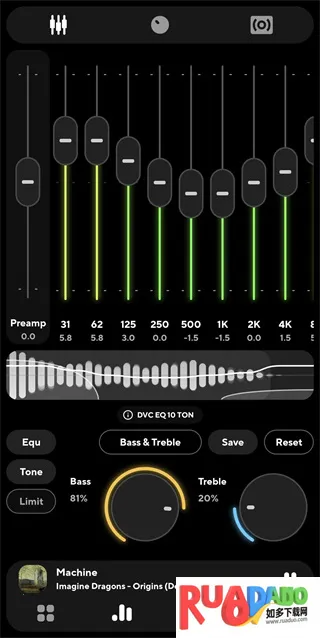 3、用户能按个人喜好调整音量均衡器、混响等参数,打造个性化听觉体验。