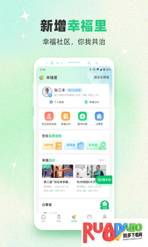 幸福绿城是为绿城园区业主打造的生活服务软件,有物业缴费、报修、社区公告等多模块。具备智慧管家、业主自治等特色,还有快递信息、活动报名等功能。能提供全维度服务,重塑邻里关系,v5.5.15优化使用体验。