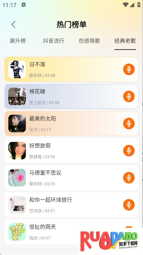 2、音乐风格包罗万象,涵盖流行、怀旧、英文等热单,满足不同用户的演唱需求。