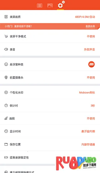 1. Mobizen提供多种分辨率和画质选项,存储空间不足时可选择低分辨率或低画质录制,节省空间。