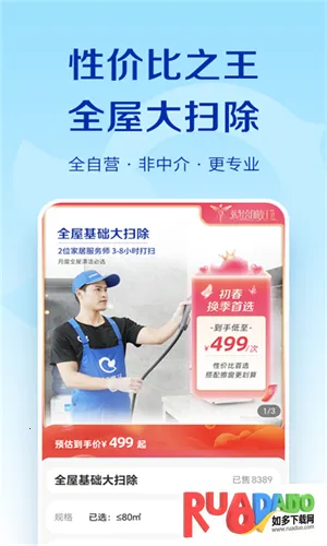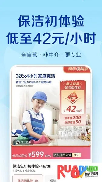 1、服务多样:涵盖家电清洗、日常保洁、家居养护、保姆育儿等家庭生活各方面,还有高端保洁、母婴护理、育婴早教、产康修复等专业到家服务,以及奢侈品养护、除醛杀虫、室内环境治理等。