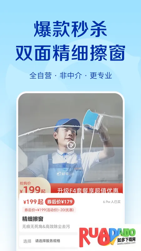 2、平台服务多样,涵盖保洁清洗、保姆育儿、家电清洗、家居养护等家庭生活各方面,还提供高端保洁、母婴护理、育婴早教等专业到家服务。