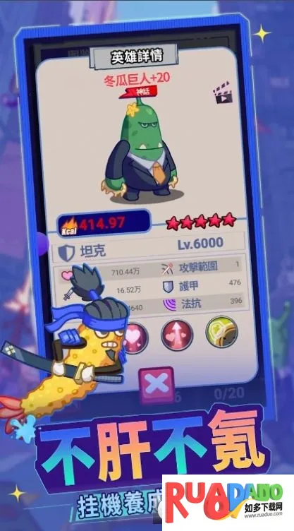 1、可爱的美食人物:游戏主角是圆润可爱的美食人物,还有众多美食角色供玩家选择,外表萌趣,让人难以抗拒。