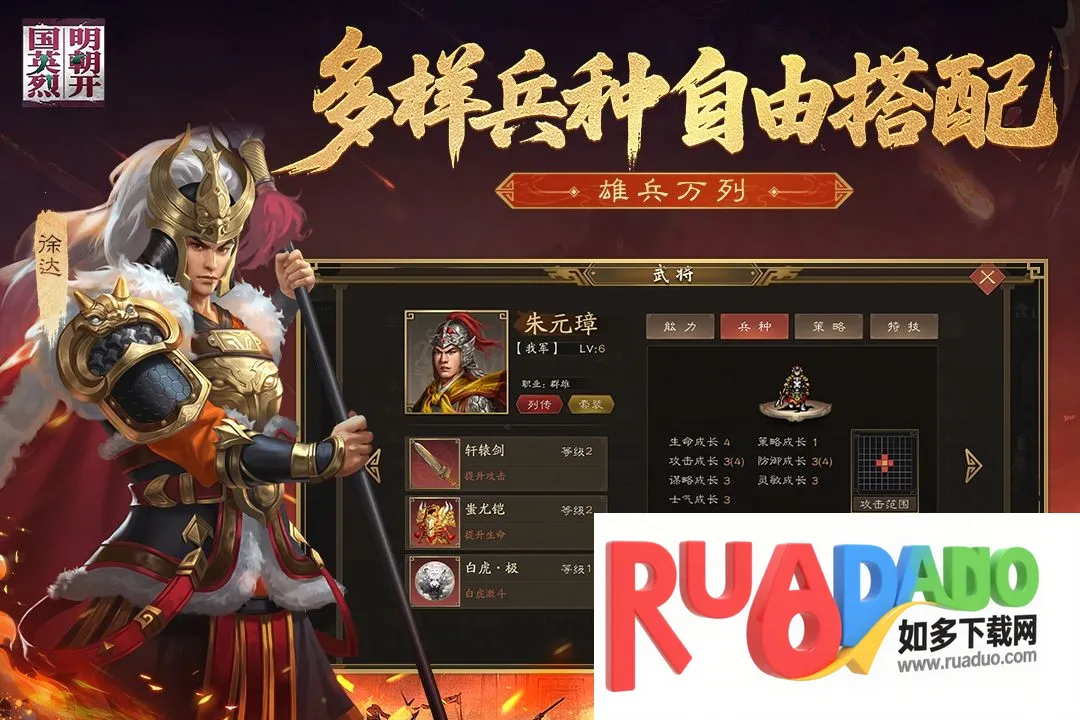 想了解明朝开国英烈最新版本游戏攻略?这款游戏以元末明初为背景,让你扮演朱元璋开启一统天下的征程。游戏采用经典战棋机制,融入武将进化、兵种克制等创新设计,有53关历史战役。