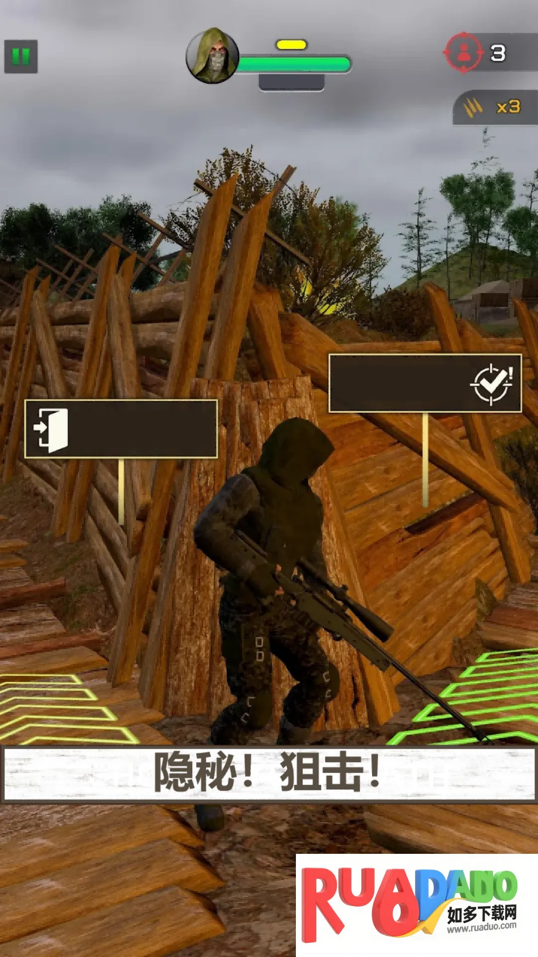 2、玩法上,玩家需快速观察场景找狙击顺序,短时间消灭敌人救人质;实时关注弹药量,避免被动;根据任务用战术道具应对复杂场景;完成任务后规划撤离路线。