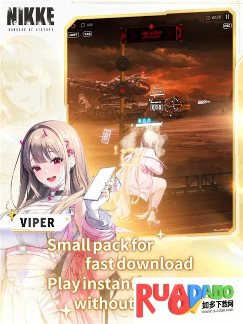胜利女神NIKKE云安卓版无需下载完整包体,安装体积小,核心体验与原版一致。你将化身指挥官,集结风格各异的少女战士作战。采用Live2D,玩法丰富,还有多种阵容搭配,武器多样,更新优化了加载与流畅度。