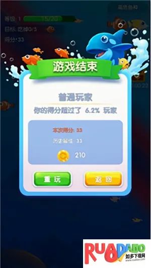 在游戏里,你能化身小鱼,不断吞噬比自己小的鱼来变强,感受逆袭称霸海底的刺激。它有精致3D卡通画风,画面清新,操作界面简洁,全程无广告打扰,给你沉浸式的畅玩体验。而且,多种模式能自由切换,单人闯关、组队协作都可以,还能和好友一起嗨翻海底世界。