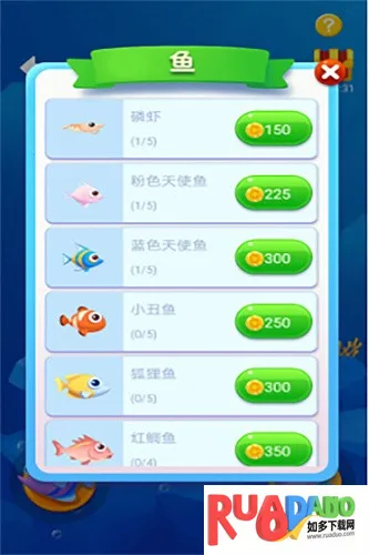 3、角色丰富:个性十足的角色设计,有数十种造型独特的小鱼等你解锁,上百款装扮可自由组合定制形象。