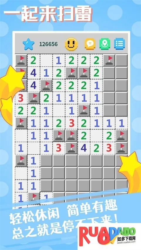 1、一起来扫雷最新手机版是经典休闲益智游戏,采用清新简约画风与简洁界面设计,适合各年龄段玩家。