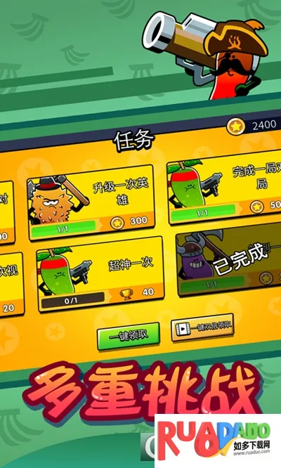 2、玩法简单易上手,有不同场景,不同水果人属性和攻击力不同,战斗时需控制时间和攻击范围,能让玩家专注力更集中。