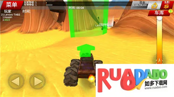 4、如下图所示:左右两侧简单易懂的操作按钮,点击即可控制车辆前行,尽情演出特技并探索世界