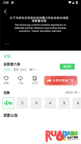 3. 支持多种清晰度切换,适应不同网络环境,还有离线缓存功能,可随时随地畅享精彩内容。