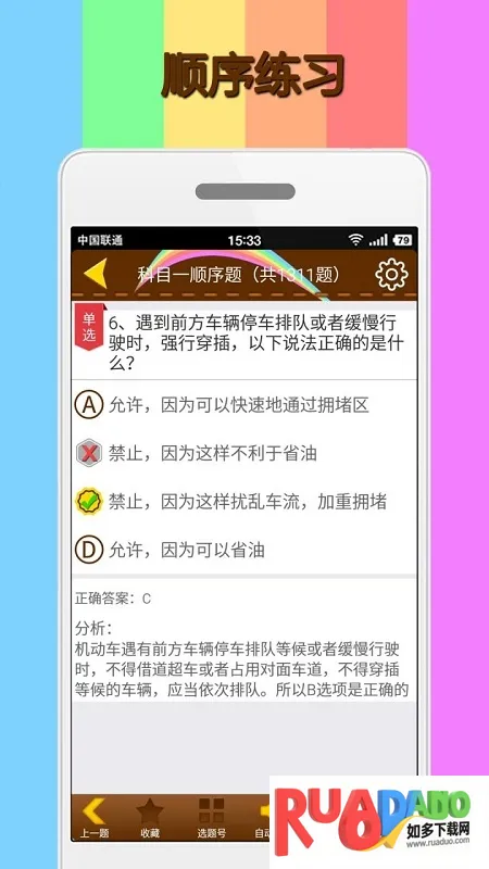 1. 系统按科目一题库顺序出题,助考生逐步掌握考试内容,增强记忆效果。