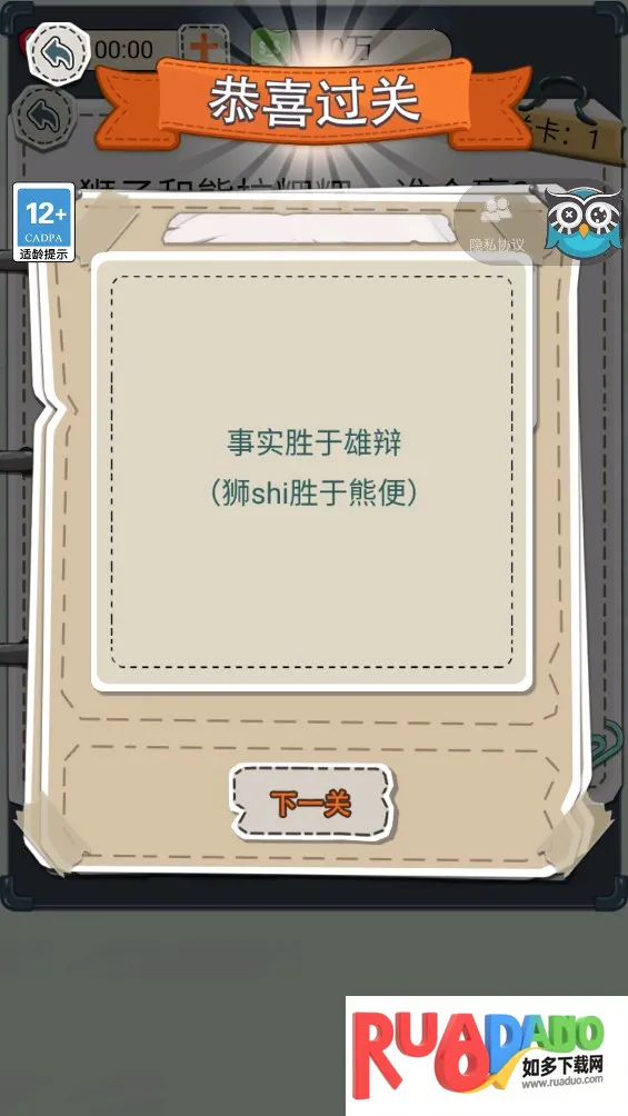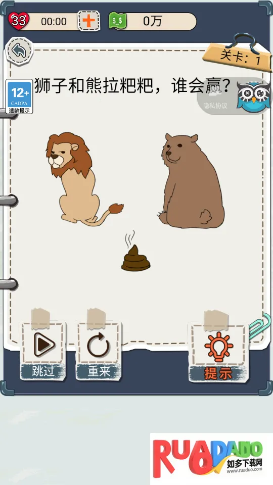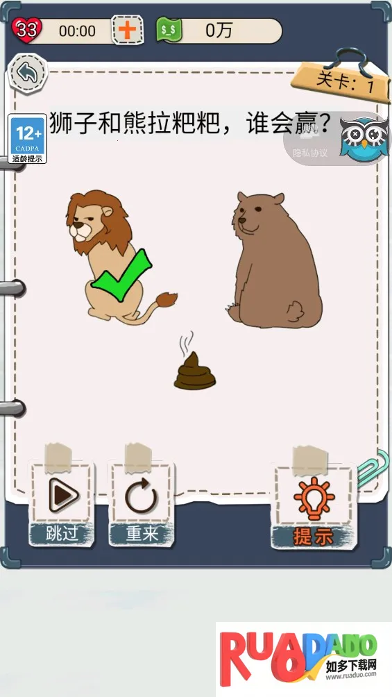 3. 简单卡通风格展示题目,带来精美画风,沉浸其中开启闯关挑战,迎接头脑风暴。