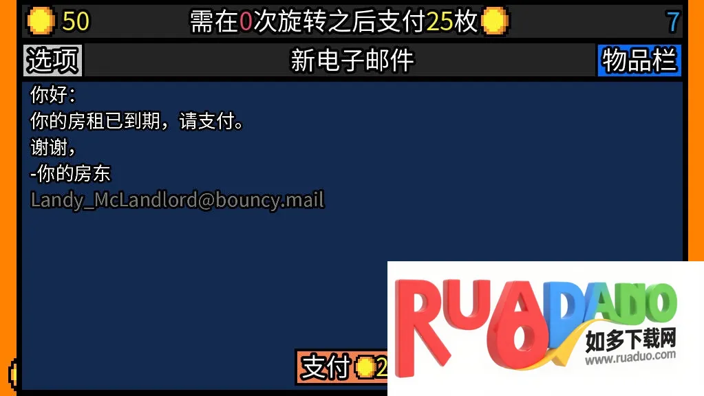 幸运房东是一款像素风roguelike策略模拟经营游戏。玩家扮演租客,用类似电玩城幸运机的机制转动符号组合获金币交租。有丰富符号物品组合,152个符号、227个物品,20个公寓楼层,186项成就,玩法简单易上手。