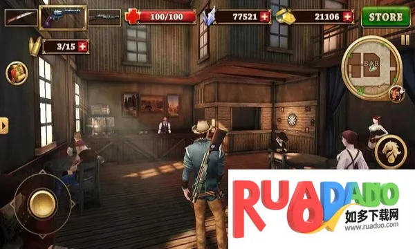 2. 拥有8套西部服装可任意搭配,20多把强力枪支自由选择。