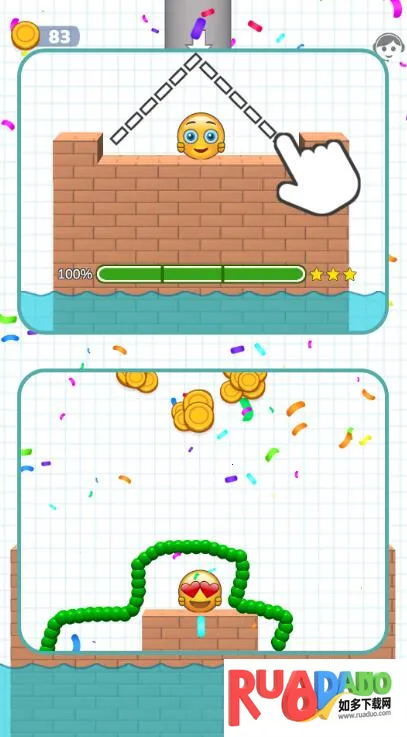 游戏中,蜜蜂会逐渐弥漫,你需要画线保护黄豆人。成功坚持就能过关并赚取金币,开启新挑战。
