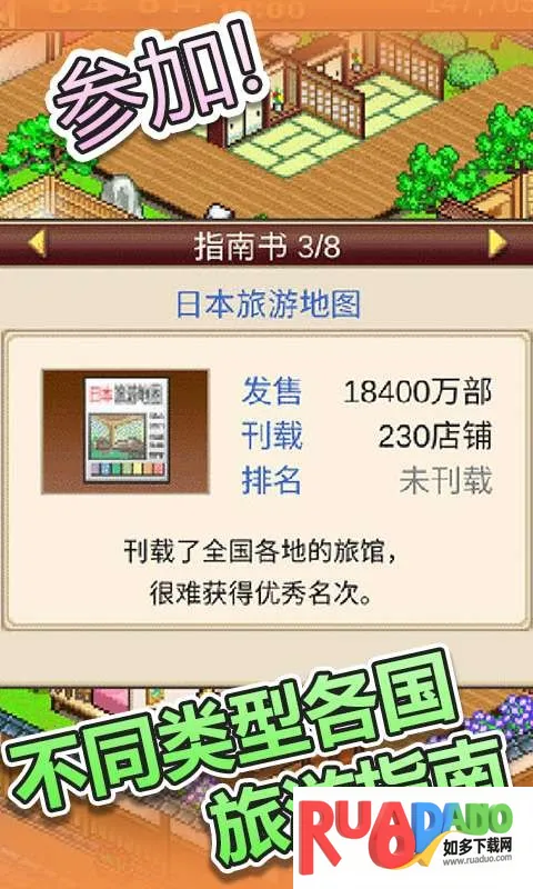 1. 可自由配置小卖部、食堂、游戏室等各种设施,打造人气旅馆。