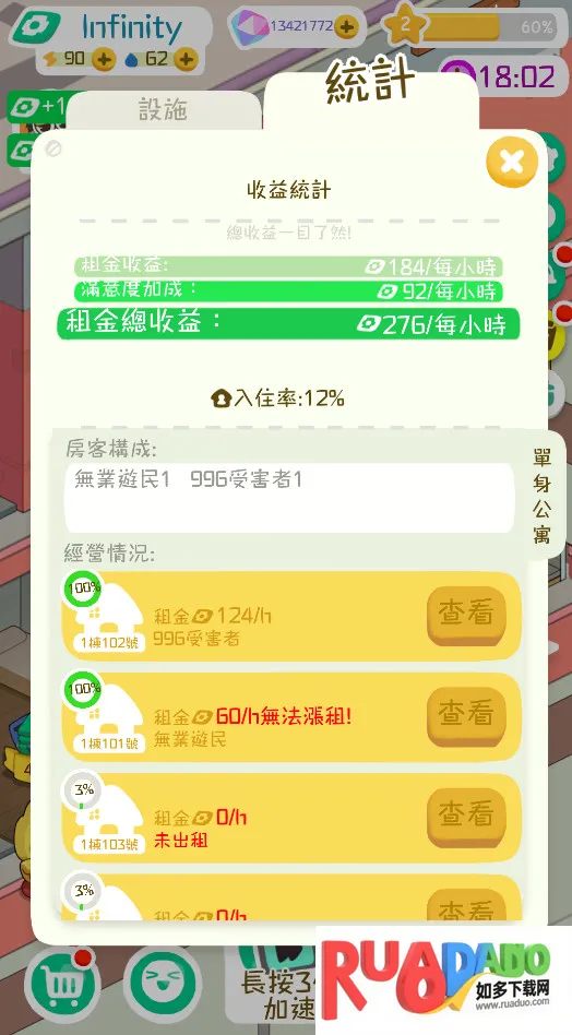 4. 升级和改善物品,提升各位置收益,成为理想房东,展示商业才华实现最大利润。