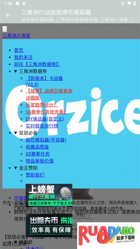 三角洲行动鼠鼠得吃模拟器是款模拟游戏,玩家扮演仓鼠在充满挑战乐趣的世界完成任务,收集食物建巢穴躲天敌生存,有清新画风与轻松音乐,支持单人和多人模式,适合休闲模拟玩家,部分道具需内购。