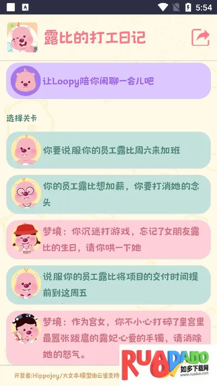 《露比的打工日记2025》是一款轻松有趣的模拟游戏,有清新画面。能管理露比工作生活平衡,自由扮演职业,完成多样任务,与角色对话闯关,解锁丰富剧情,还有多样皮肤,根据职业需求工作获奖励。