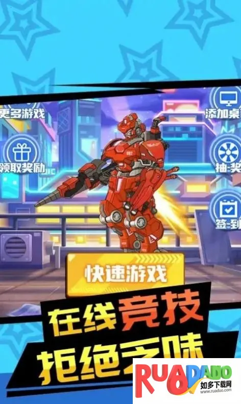 “红蓝机甲对战2025下载”很不错。它支持跨平台对战,让玩家能在不同设备上尽情游玩。多种玩法丰富了游戏体验,无论是传统对战还是合作、竞技模式,都乐趣十足。每个机甲的独特技能可自由组合,创造个性化战斗方式。而且还会不定期推出新内容,战斗系统和机制灵活,玩家能自由发挥。这样一款精彩的机甲对战游戏,值得下载体验。