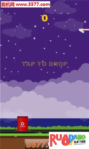 2.游戏中的手和下方的垃圾桶会自动左右移动,需点击屏幕使瓶子下落准确掉入垃圾桶