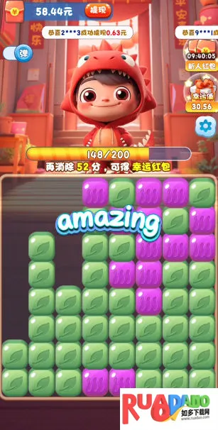 鸿运乐消消是一款红包消除游戏,融合俄罗斯方块玩法。操作简单,触屏点击消除相同图案方块,有限定步数。过关能领红包,可解锁新关卡,还有多种模式,老少皆宜,能让人在消除中感受休闲欢乐并赚取零花。