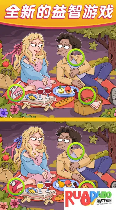 找个茬茬2025最新版本是一款解压闯关游戏。玩家需在相似图片中找差异,锻炼注意力、记忆力与逻辑思维。有丰富类型任务,突破障碍展现能力,解锁道具,挑战成功赢奖励,寓教于乐。