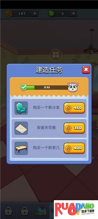 3. 主界面有类似维修的按钮,点击能进入客厅装扮自己的小房间。