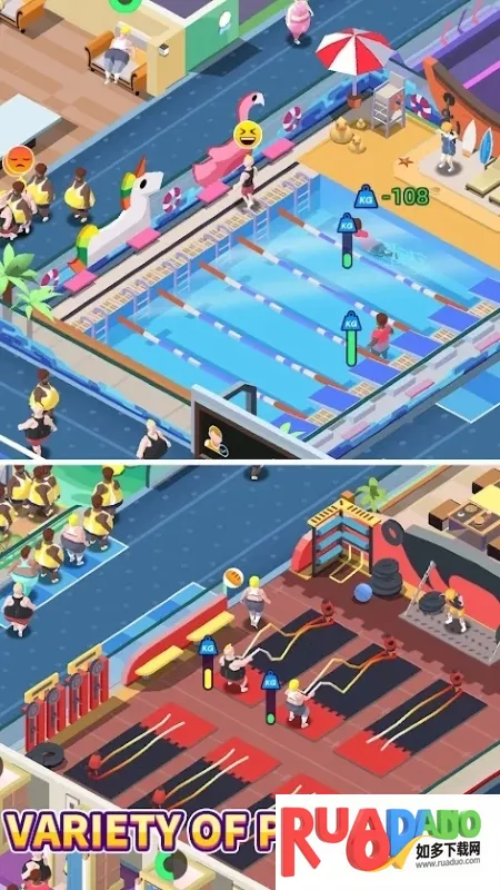 4. 作为俱乐部老板,能收取员工帮助经营,举行健身比赛,吸引游客赚取金币,真实模拟健身房场景。