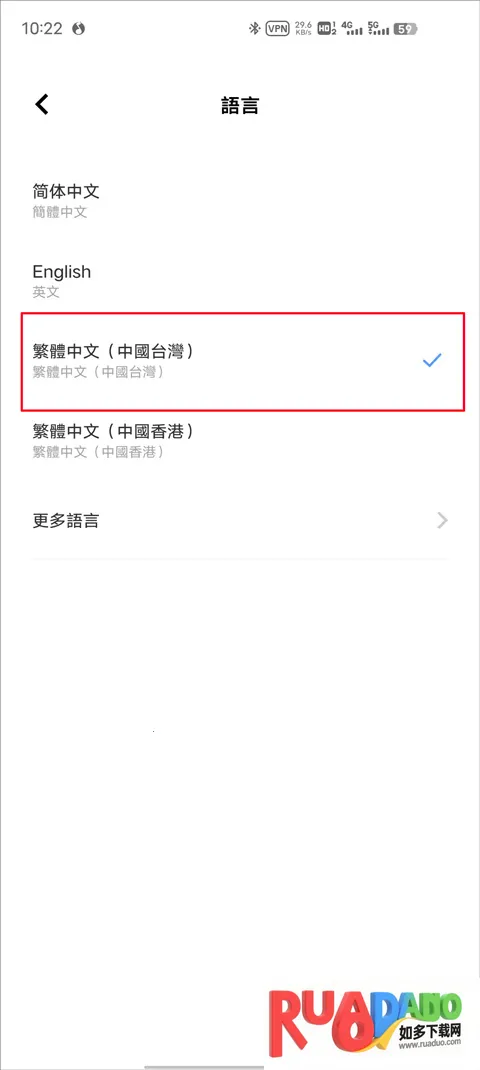 2、然后打开手机设置,找到语言,选择语言为繁体中文(中国台湾);