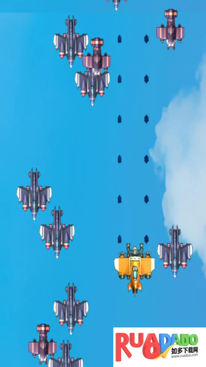 3. 准确消灭敌机,躲避伤害继续前行。