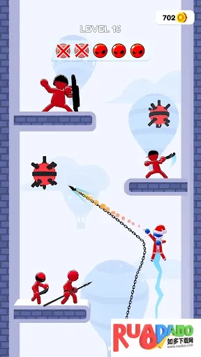 1. 这是一款令人兴奋的休闲游戏,操控火柴人利用投掷武器瞬移,消灭敌人通过关卡挑战自我。