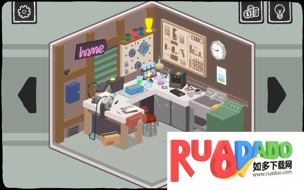 大发明家最新手机版是模拟休闲解谜游戏,背景设定在未来。玩家扮演发明家在封闭实验室搞发明,要克服谜题挑战,结合经营元素,发挥创意创造物品,解锁材料实验赚取收益,还有独特房间旋转机制等。