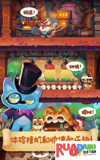 1. 游戏拥有萌系猫咪画风设计,能治愈玩家每一天。