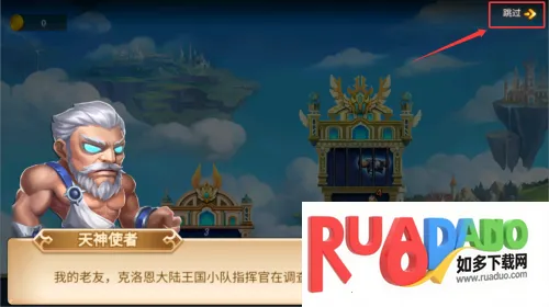 2、点击红框箭头指向的跳过按钮,略过剧情对话。