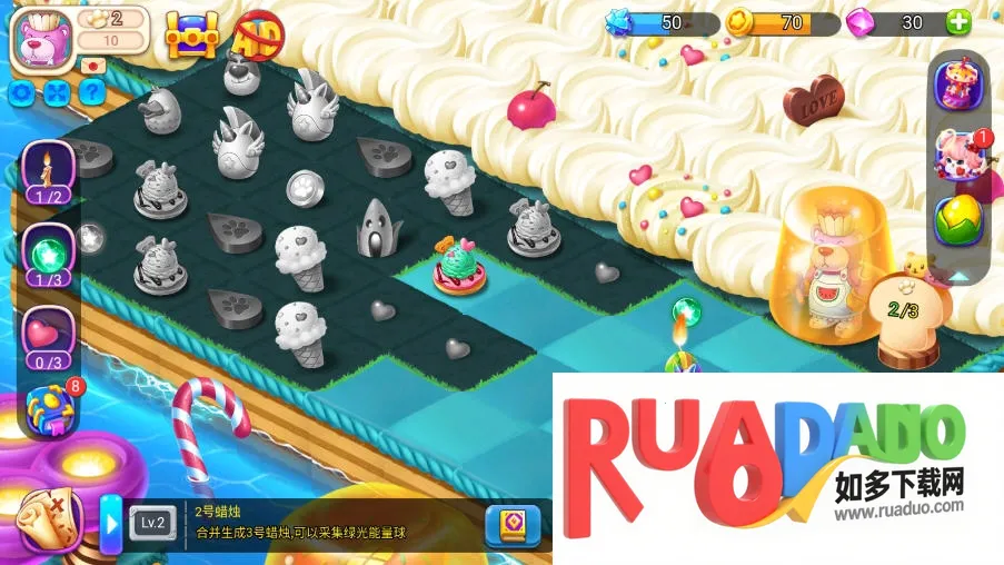3. 有成千上万的魔法秘密等待解锁,众多糖果精灵会让玩家踏上全新旅程,且所有合成道具都是糖果。