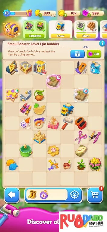 1. 尝试合并相同项目,通过策略和观察力找到有效合并方式,解锁新关卡与道具。