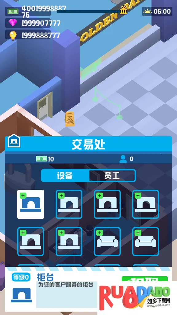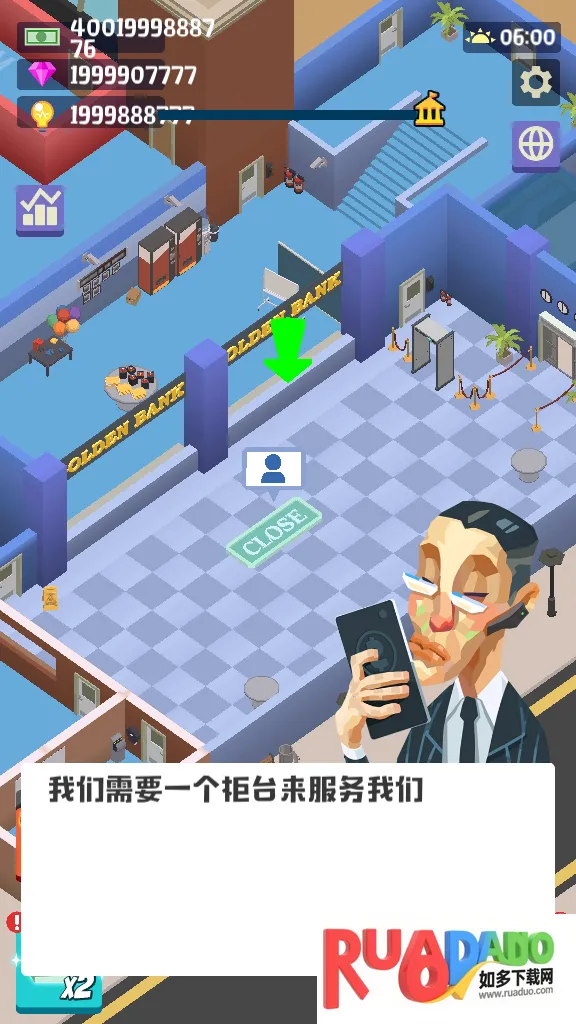 4. 由经理决定银行发展,界面简洁有趣漂亮,可升级银行、招聘员工提高效率。