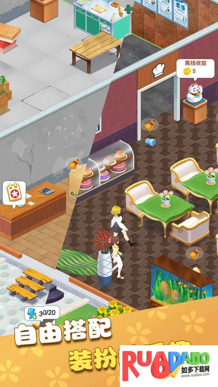 3. 可自由装饰店铺,根据喜好打造有特色的店面,还能升级装修。