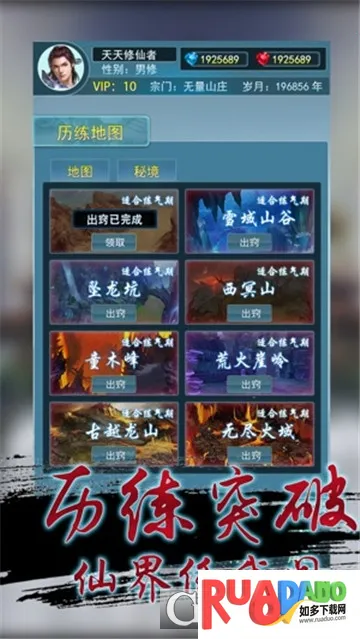 2、有秘境历练等多种玩法,像每天免费探索秘境,还有各种付费道具可免费获取。