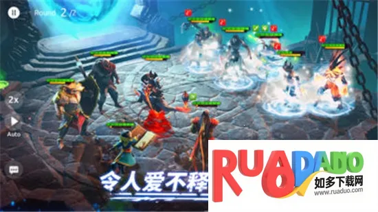 2. 队伍在竞技场参加节奏快速且强调战术的回合制史诗战斗,画面惊人,每个决定都至关重要。
