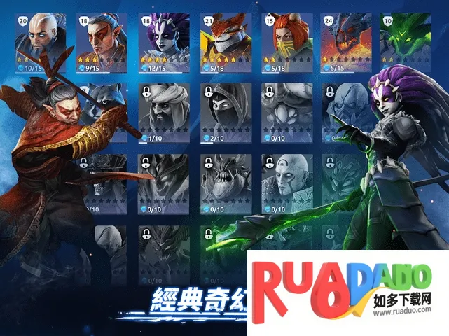 2. 3D建模精美,众多英雄角色特色鲜明,蜥蜴人、精灵等数十名角色可供选择。