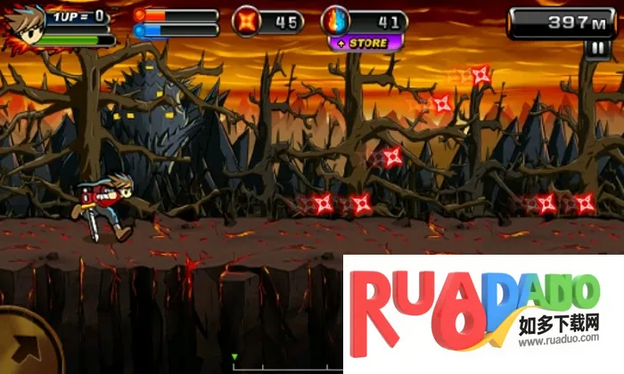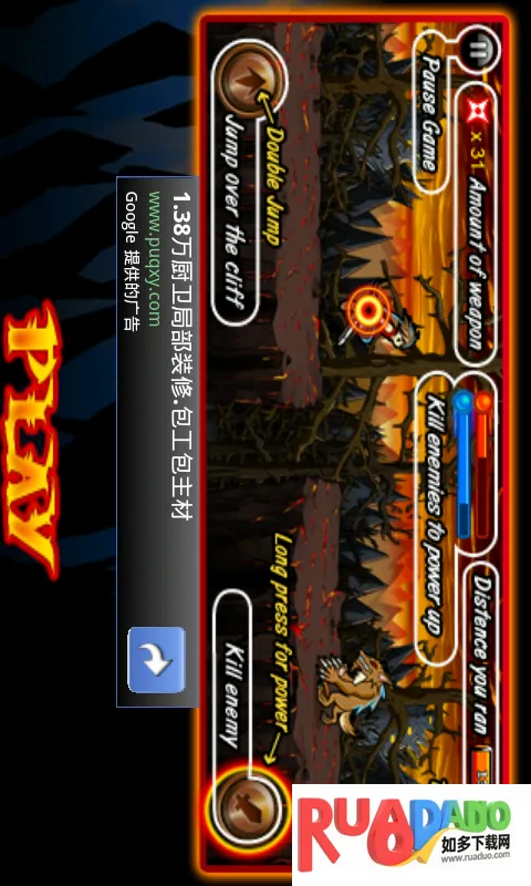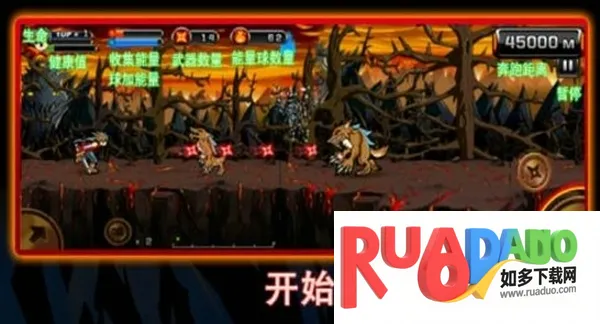 3. 玩法丰富,能跳过悬崖,两次跳得更高,长按出招键积累能量,收集道具获得更多必杀技,还有游戏加速。