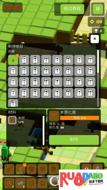1. 游戏融合平台跳跃与生存建造,单机联网皆可体验,玩家能收集资源制作装备抵御怪物努力生存。